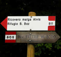Prendere la stradina di sinistra, non quella che costeggia il lago, indicazioni per malga Alvis e rifugio Bruno Boz (da non confondere con il ristorante).
