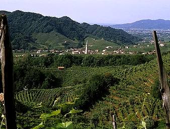 Colline sulla "strada del Prosecco". Articolato sistema con mumerose vallecole che si estende tra Conegliano e Valdobbiadene, interrotto dalla profonda incisione del fiume Soligo.