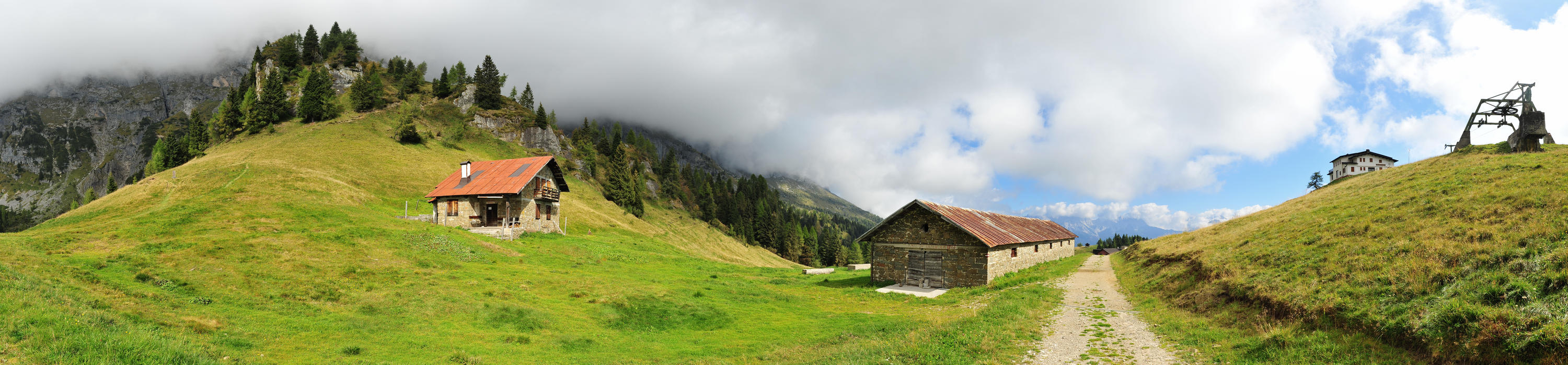 Frassené Agordino: malga Losch e rifugio Scarpa-Gurekian al monte Agner, catena meridionale delle Pale di San Martino, Dolomiti