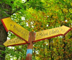 Dopo un chilometro, tra le case via via più rade, troviamo un bivio con l'inizio degli itinerari segnati da cartelli.