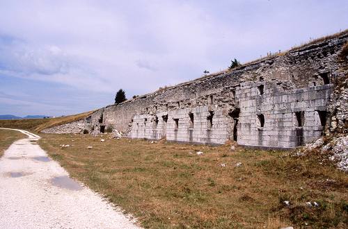 raggiungere l'ex Forte LisserOltre che in auto fino al piazzale antistante, il forte si raggiunge con una panoramica passeggiata su stradina sterrata partendo dalla località Tombal, antica osteria nei pressi della strazione intermedia della teleferica per il forte, oppure direttamente da Enego per la ripida mulattiera che porta al Tombal e successivamente per la stradina.Dal Tombal si prosegue per la stradina, sulla sinistra, in leggera salita fino a raggiungere malga di Lambara / Casera Dalla Palma (m.1425), dove sulla destra si stacca la stradina di accesso al forte per la quale si passano anche i ruderi della caserma di servizio del forte. I panorami sono sempre splendidi e via-via più aerei finché, dalla cima, la vista spazia (interrotta solamente dalle brutture degli skilift e delle antenne) a 360 gradi. Dal Tombal (m.1275) il percorso si effettua con molta tranquillità in un'ora e mezza, sono circa sei chilometri. Il Tombal si raggiunge da Enego dirigendo verso Foza-Asiago fino al 'Bivio Dori', circa 6 km, si svolta a destra, indicazione 'Centro Fondo Valmaron-Marcesina', e si prosegue per altri 3 km. Il 'Bivio Dori' si raggiunge anche da Asiago o Foza dirigendo verso Enego. Enego (m.751) si trova a 10 km da Cismon del Grappa (strada della Valsugana)(indicazioni). | |