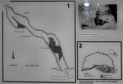 Vi sono bellissime formazioni di stalattiti molto delicate, ma la cosa che la rende unica e stupefacente sono i reperti preistorici (5.000/8.000 a.C.?) di caccia, tizzoni di fuoco, utensili di selce, ossa di cervi e di orsi, prodotti della macellazione e conservazione degli animali.