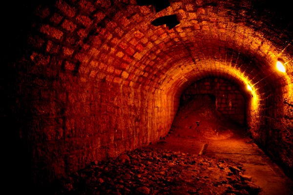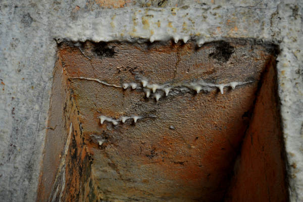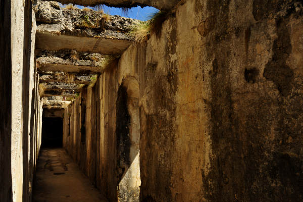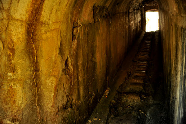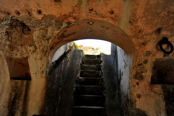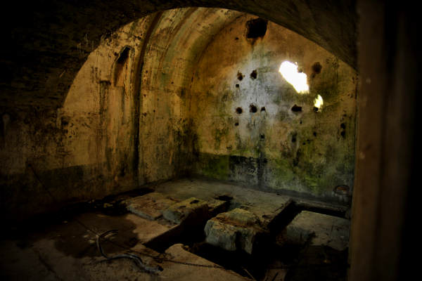 in quanto costruito 'in economia' con grossi spessori di cemento ed impasto di pietrame grossolano, fino a 2,5 m. per le coperture e i basamenti delle cupole girevoli d'acciaio, ma senza armature in metallo.