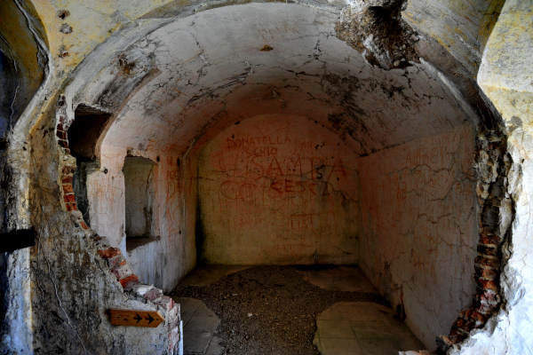 Imponente apparato fortificato Italiano risalente alla I^ Guerra Mondiale, abbastanza ben conservato, visitabile esternamente e, in parte, internamente.