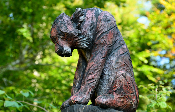 Al termine troviamo una stradina forestale e poco oltre, indicazioni, l'installazione dell'Orso Errante e la grotta Carachighele con un anfiteatro naturale a formare una specie di teatro.