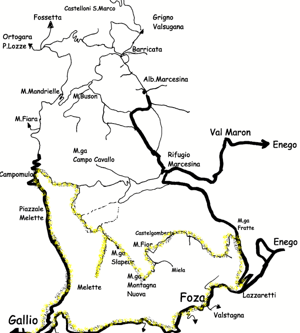 | Gallio, Foza, malga Lora, Spil monte Fior, Montagna Nuova, malga Slapeur, Meletta Davanti, Campomulo |