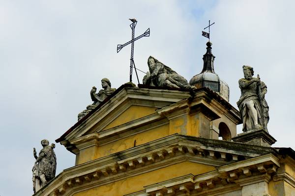 Il centro è caratteristico per la vecchia chiesa e l'alto campanile, mentre sulla destra, lungo la strada, possiamo vedere l'incompiuta villa Trissino, di disegno palladiano.