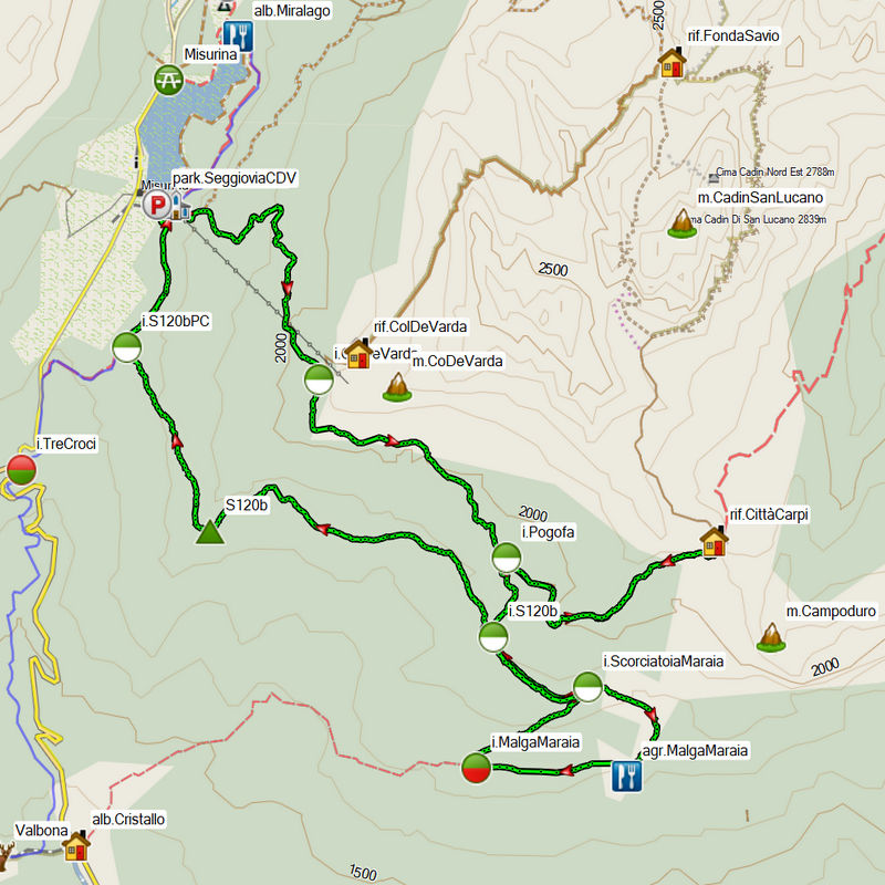 ricoveririf. Col de Varda (arrivo seggiovia), rif. Città di Carpi, agriturismo Malga Maraia