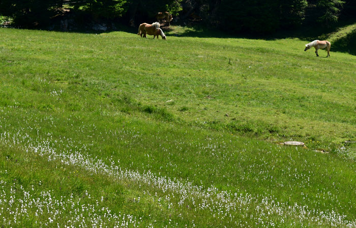 In genere nel periodo estivo troviamo mandrie di vacche al pascolo o dei bellissimi cavalli.