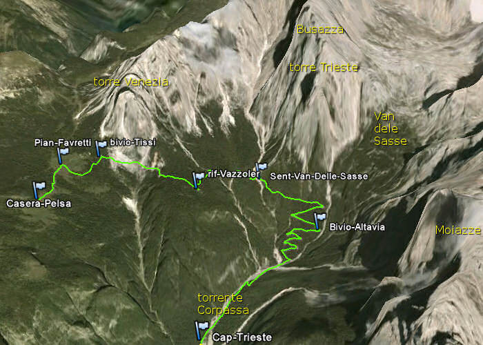 | luoghi | Val Corpassa, Capanna Trieste, rifugio Vazzoler, rifugio Tissi |
