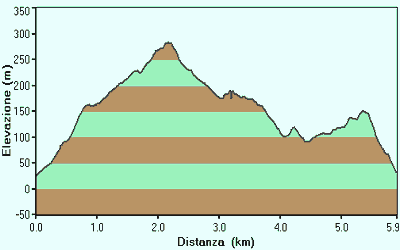 Si tratta di una larga mulattiera in moderata salita che con alcuni tornanti, e alcuni scorci sull'area di cava, ci conduce ai margini dell'area boschiva, nei pressi di un bel vigneto.