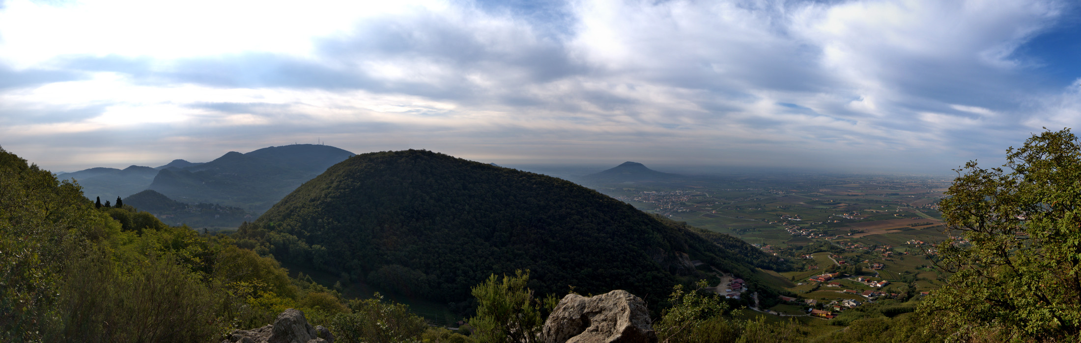 terrazzo panoramico dal sentiero nei pressi l'Eremo di Sant'Antonio Abate da passo Fiorine sul Monte Madonna di Teolo, a sinistra (antenne) il Venda, sulla destra il monte di Lozzo