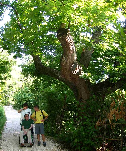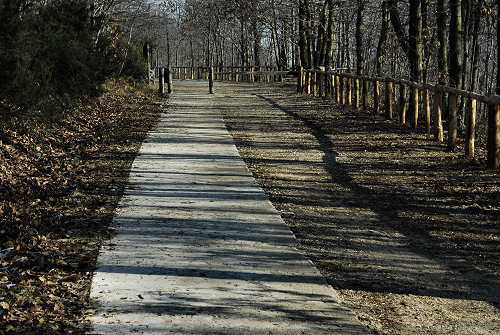 Tutto il percorso, dal parcheggio al termine della strada, all'area del 'Bosco Maronari' ha una apposita corsia cementata per le carrozzine e offre solo qualche lieve tratto di salita.