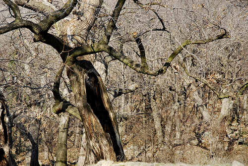 La vegetazione all'interno del bosco è talmente fitta che i raggi solari non riescono a penetrare.