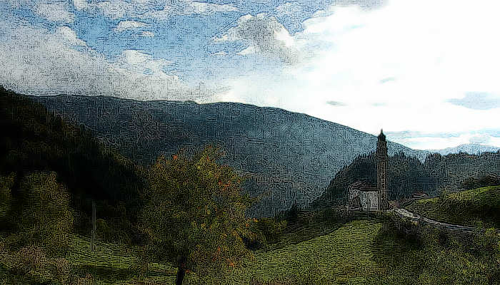 Prima della chiesetta di Salzen, sulla sinistra, si scende per la ripida stradina fino al fondo della valletta dell'Ausor.