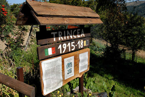 Lungo il percorso alcuni cartelli illustrano la situazione degli avvenimenti bellici e come venivano scavate ed organizzate le trincee al fronte.