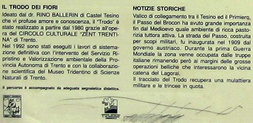 Trodo (sentiero) dei Fiori al passo Brocon (m.1615)