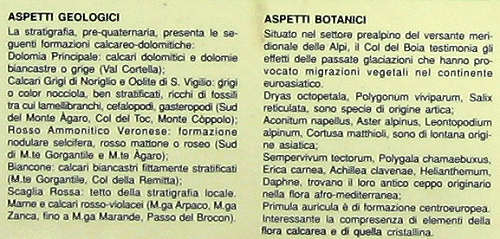 Trodo dei Fiori" (trodo=sentiero) al Col della Boia (forcella Cavallara), anello escursionistico a carattere botanico ideato nel 1980.