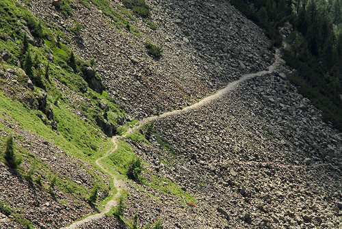 La discesa non è difficile o pericolosa, ma molto ripida e su 'dure' pietraie, pochissimo frequentata e 'spaccagambe'.