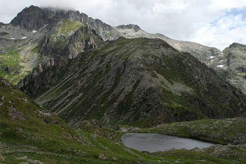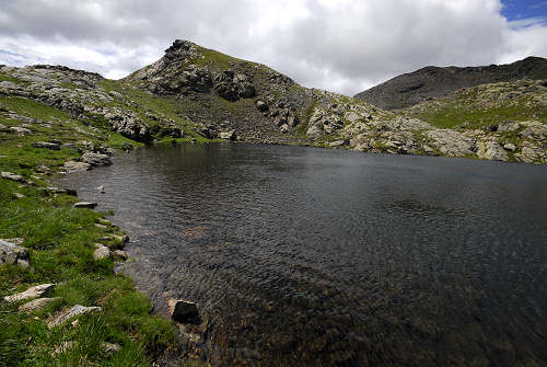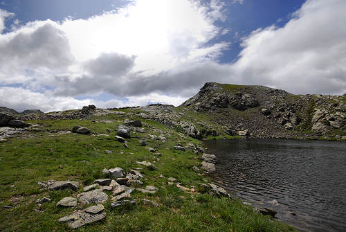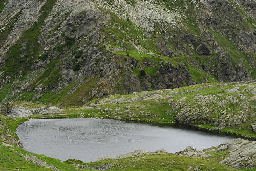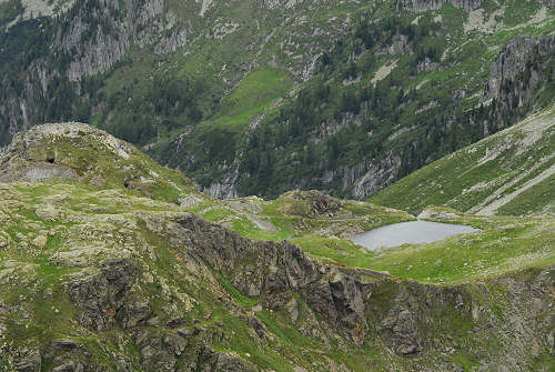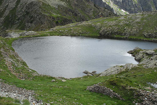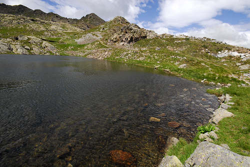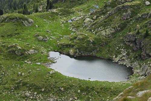 Da forcella Magna, verso sinistra (ovest), si risale brevemente la balza rocciosa per trovarsi inaspettatamente allo spettacolare e solitario laghetto di forcella Magna.