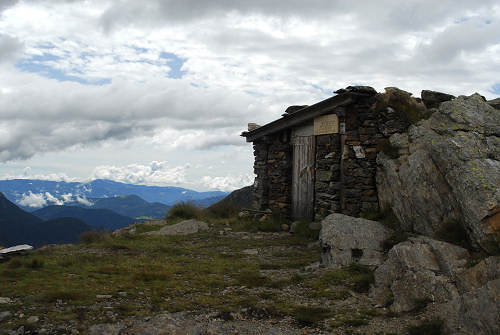 Si prosegue, in ripida salita per l'evidente traccia, alla misera baracca del Baito Lasteati che si staglia lungo la cresta.