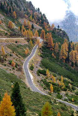 Al di là, riprendendo il bosco e la monotonia dai bellissimi colori in autunno, si scende con tantissimi tornanti ed infine con lunghissimi rettilinei che invitano a velocità pazzesche (...sempre molta prudenza in discesa), verso Molina di Fiemme e Cavalese.