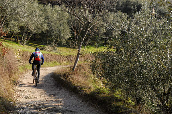 La bella stradina, sinuosa per i numerosissimi tornanti, è molto frequentata anche da ciclisti in mountain bike che percorrono questo itinerario o si sbizzarriscono con altre divagazioni.