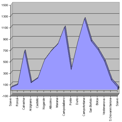 Giro di boa attorno alla valle del Chiampo, lungo le dorsali montuose di Arzignano-Altissimo e Bolca-San Giovanni Ilarione, con le impegnative salite ai due stupendi altipiani di Campodalbero e Campofontana.