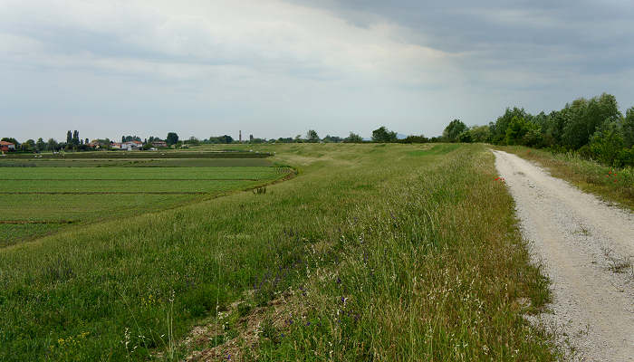 dovebassa padovana a Correzzola, tra gli argini del Bacchiglione-Roncajette e la campagna di Cavarzere