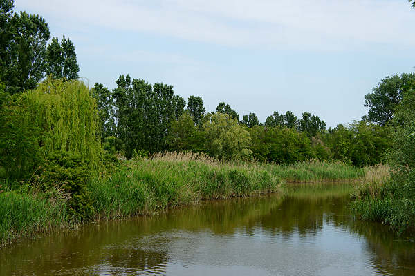 Oltre il sottopasso si risale sull'argine, parzialmente sterrato, e con lunghi rettilinei proseguiamo fin nei pressi all'Oasi di Ca' di Mezzo. Svoltiamo a destra lasciando lo sterrato che prosegue sull'argine e siamo all'ingresso dell'Oasi.