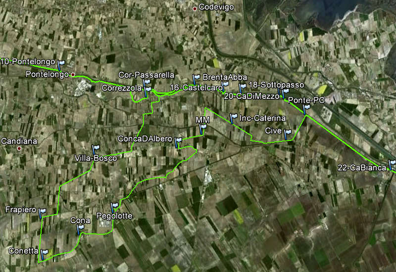 downloadtraccie Gps dell'escursione e itinerario interattivo con Google/Earth, cicloturismo nella Saccisica e Conselvano
