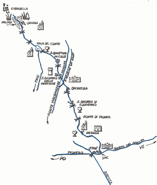 Onara si raggiugne facilmente dalla statale della Valsugana, svoltando (destra) qualche chilometro prima di raggiungere Cittadella (provenendo da Padova) in località Facca.