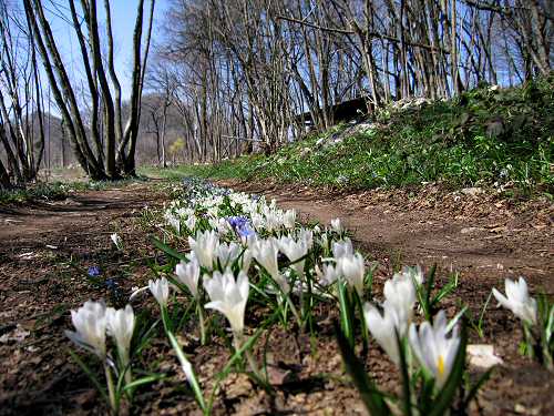 Ridiscesi brevemente si prosegue per la stradina ora meno importante e poco più che una mulattiera. Si può osservare un bel roccolo.