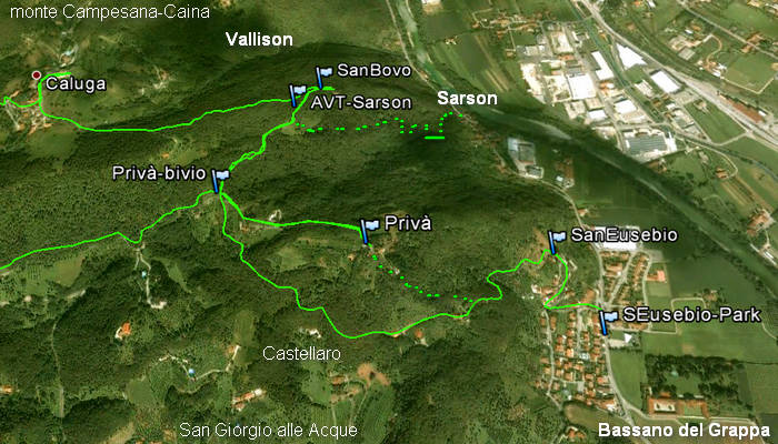 Più praticamente si può partire da Sant'Eusebio, il primo borgo fuori Bassano in destra (idrografica) Brenta.