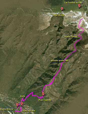 | percorso | San Nazario, Pian Castello, strada Penise (Moschina Bassa), Alpe Madre e ritorno |