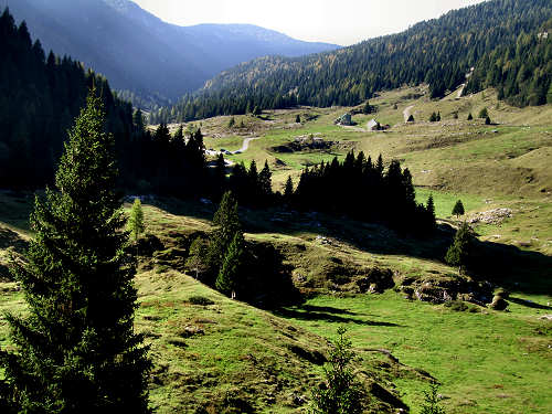 Malga Val Galmarara (m.1.500), nel mezzo dell'omonima valle, si raggiunge per una strada sterrata molto ripida che si dirama dalla strada della Val d'Assa.