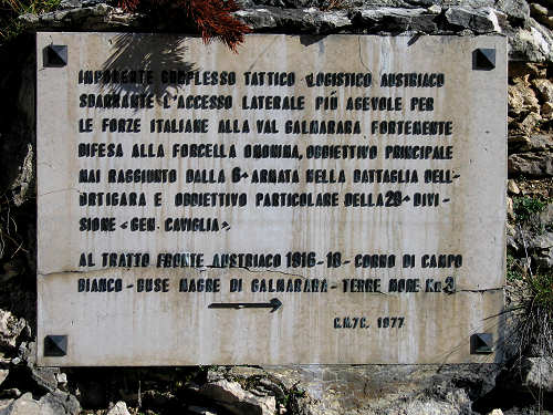 Il bivio Italia, proprio al cospetto di Cima XII sulla grande depressione carsica tra la Cima Corno di Campo Verde ed i Campigoletti, è lo snodo tra la val Galmarara, la val Trentin sotto il Portule e Cima XI-Ortigara.