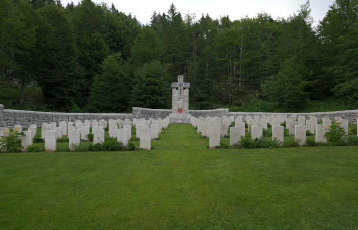 Su queste balze rocciose, ora completamente ricoperte da un fittissimo bosco, combatterono anche i battaglioni inglesi, come testimoniato dai Cimitieri Inglesi nei pressi.