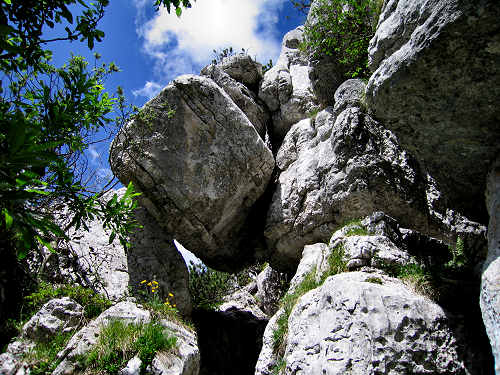 raccomandazioni importanti: non avventurarsi nelle spelonche e nelle grotte che si aprono numerose e non tentare acrobazie sui gradoni rocciosi.