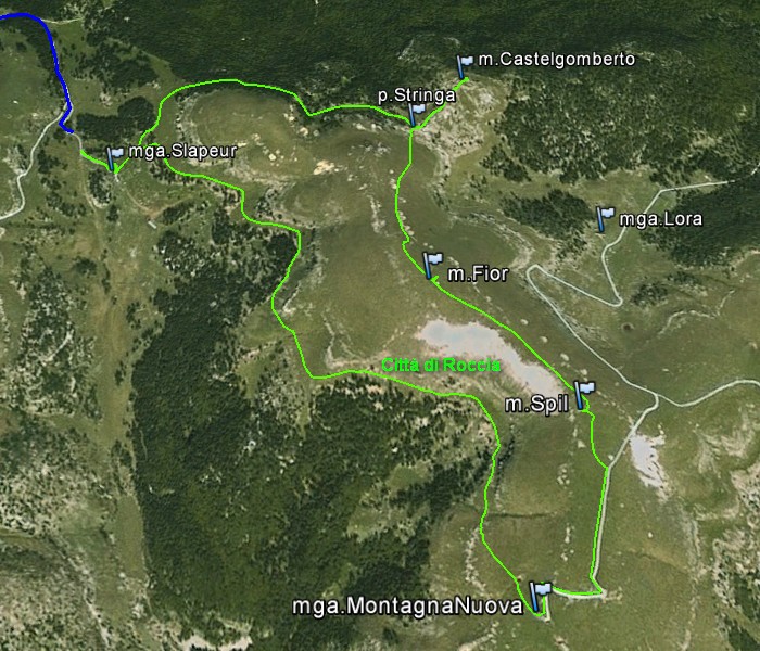 | luoghi | malga Slapeur, Città di Roccia, malga Montagna Nuova, monte Spil, monte Fior, selletta Stringa, monte Castelgomberto, selletta Stringa, malga Slapeur |