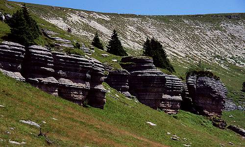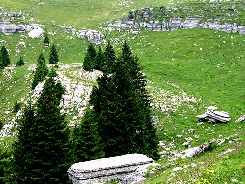 | mtb | sia malga Slapeur che le malghe Lora e Montagna Nuova sono facilmente raggiungibili in mountain bike, il tratto di traversata della Città di Roccia si può fare facilmente con la bici a mano - vedi scheda Gallio, Foza, Lora, Fior, Slapeur, Campomulo |