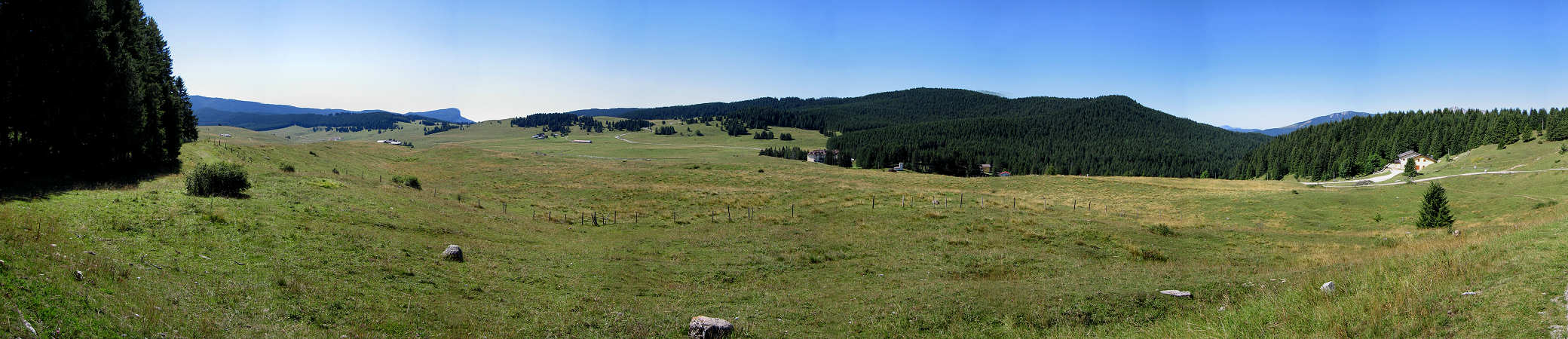 Panoramica sulla piana del Vezzena dai pressi dell'ex forte di Busa Verle, altopiano del Vezzena