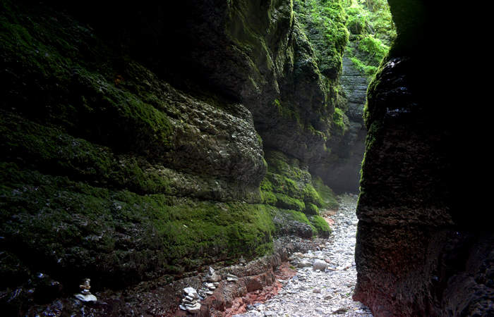 Il fondo del canyon è particolarmente freddo e umidissimo, con sbuffi nebbiosi anche in estate.