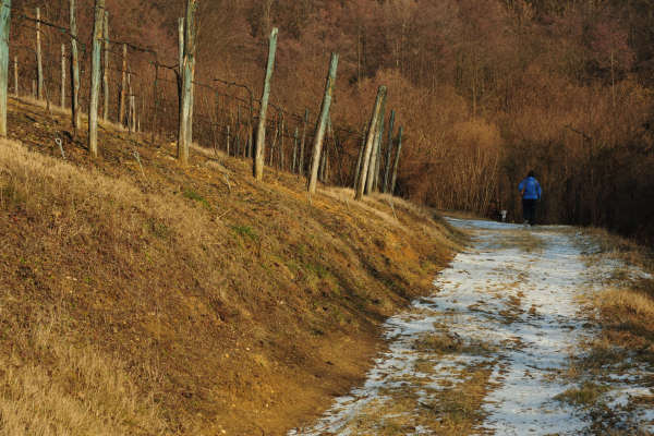 Dirigiamo diritti verso un vigneto per scendere nel fondo della valletta e risalire il versante opposto attraversando un bellissimo boschetto.