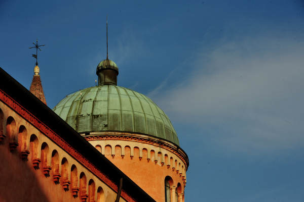 Sbuchiamo alla scalinata ed in breve siamo sulla piazza in cima al colle dove con molta calma possiamo ammirare a 360 gradi l'orizzonte, con a sud la pianura veneta e a nord il