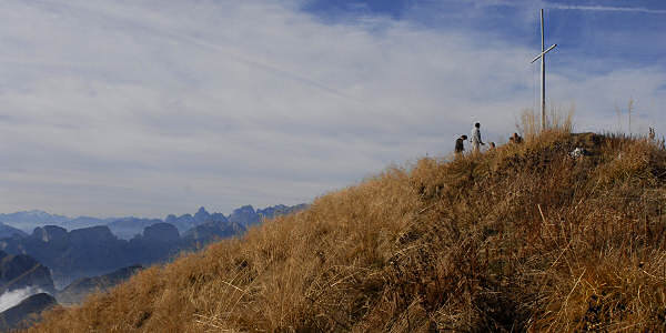 Un attimo di emozione, una preghiera di ringraziamento accanto alla Croce di vetta, il tempo della gioia finisce sempre troppo presto ed è la volta di dirigere verso il basso.