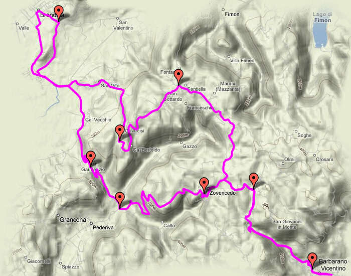 Descriviamo il giro partendo da Brendola, ma partendo da Barbarano sostanzialmente si equivale.