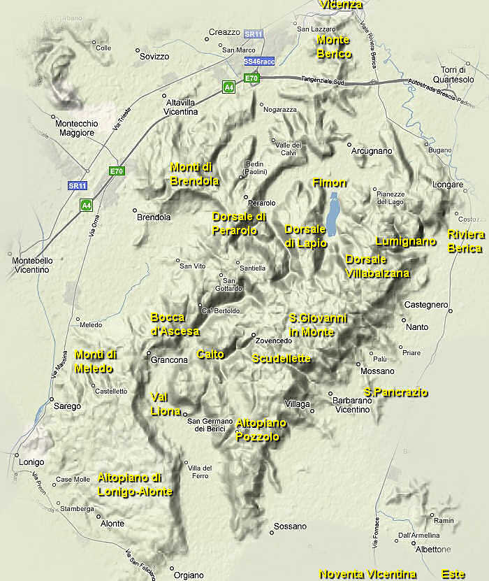 area escursionistica dei Monti di Brendola e dorsale di Perarolo - settore nord/ovest: Arcugnano, Altavilla, Brendola |
