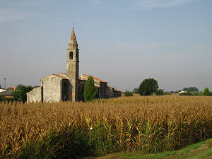 prima di Correzzola scendere dall'argine poi strada comunale fino alla chiesa, verso sinistra alla corte Benedettina,