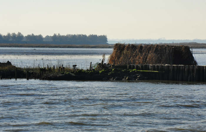 L'abbandono al naturale, alla forza del vento, alla violenza delle mareggiate, all'impercettibile ma implacabile lavoro di trasporto di materiali dal fiume, è evidente nell'imponente mole di materiali di risulta.